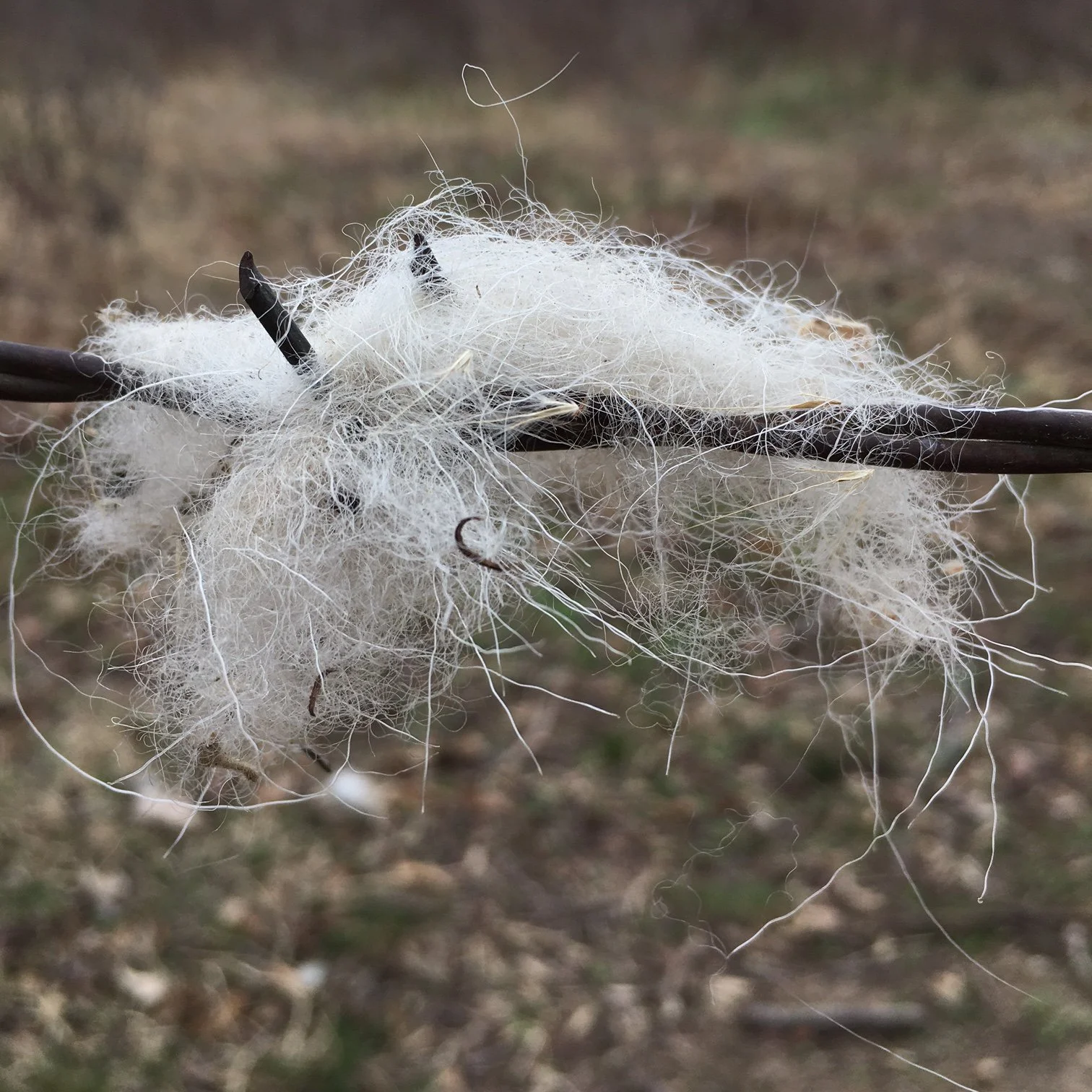 Sheep hair on barbed wire from wayward wandering sheep.
